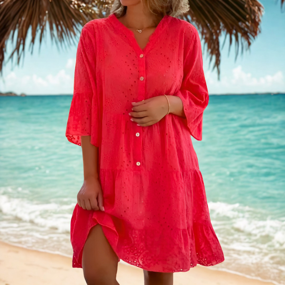 Lekka i kobieca sukienka z delikatnym haftem – idealna na co dzień i wyjątkowe okazje.