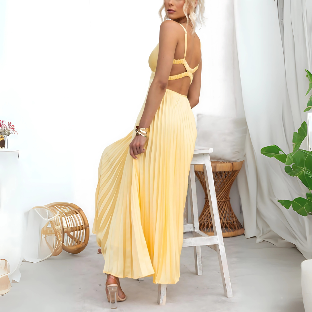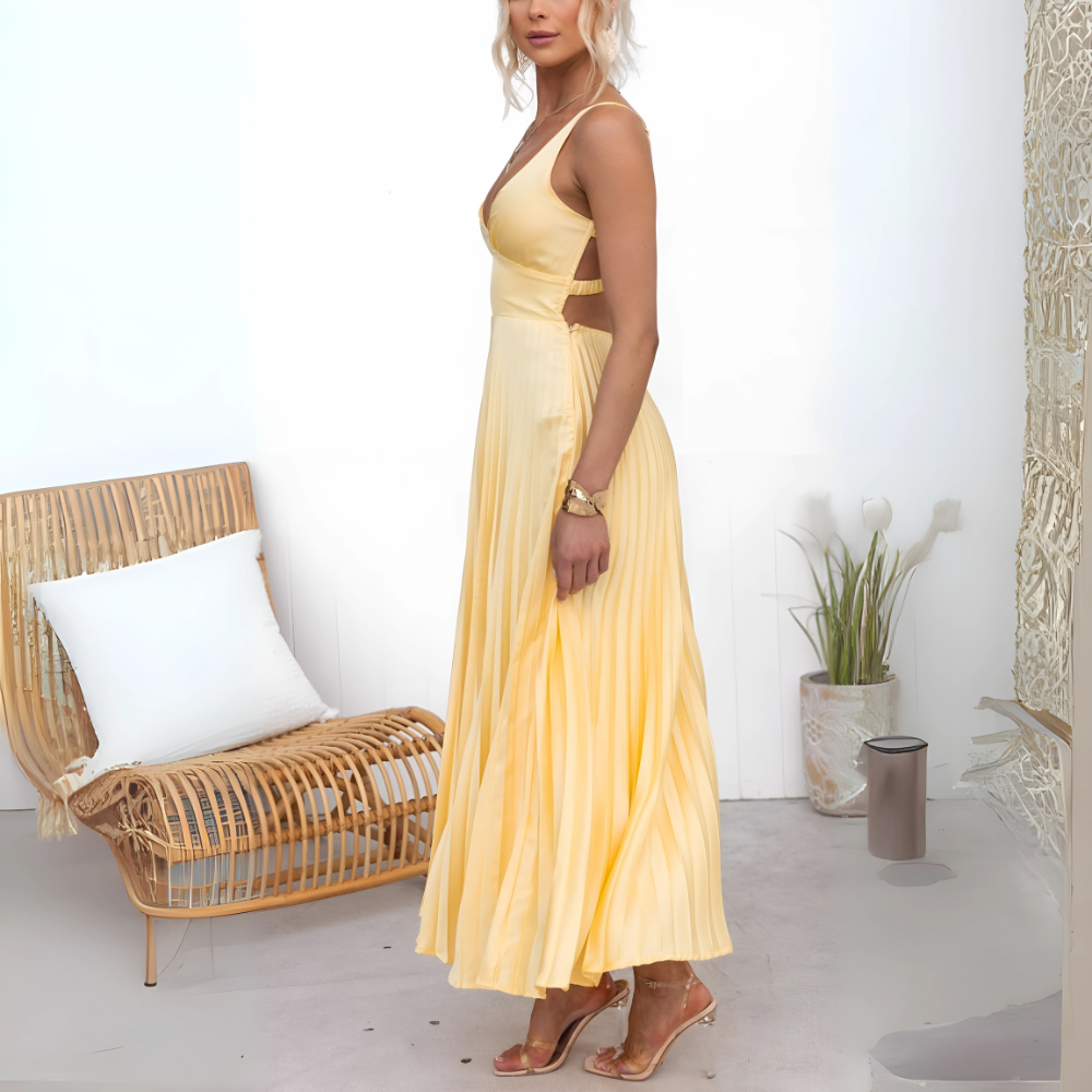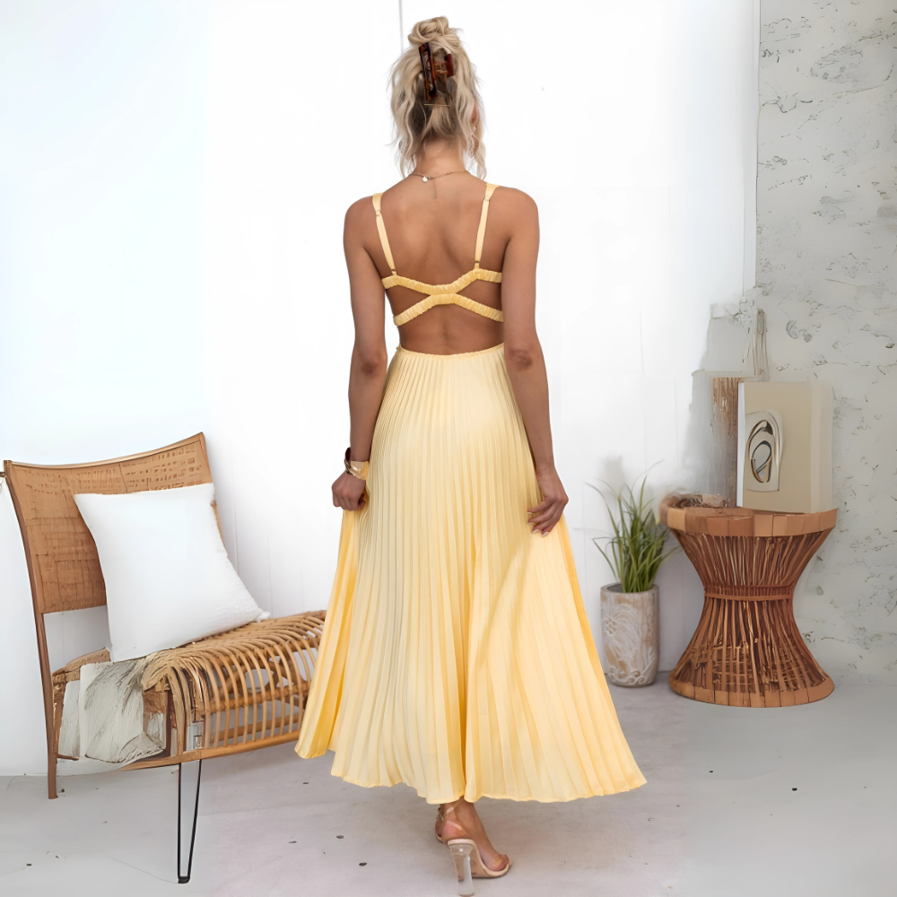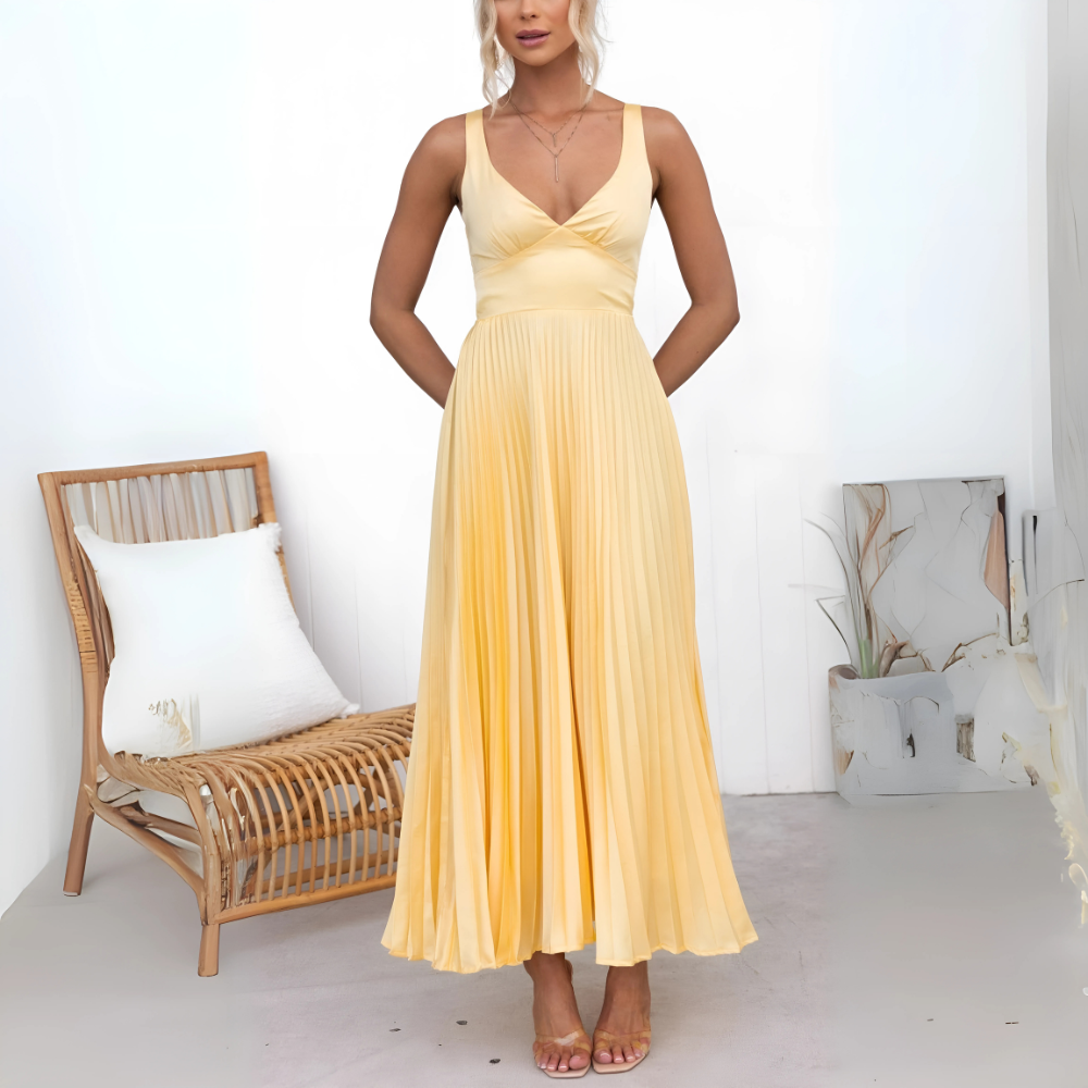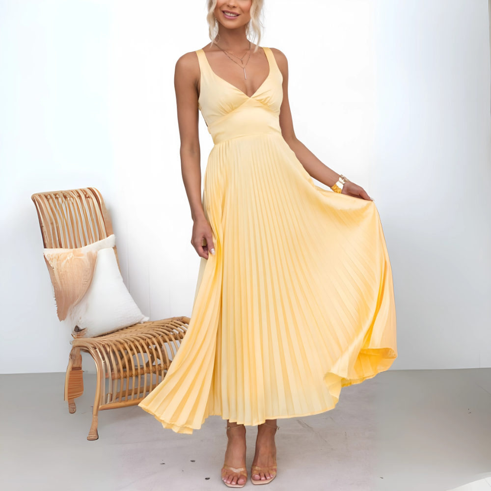 Amelia – Żółta plisowana sukienka