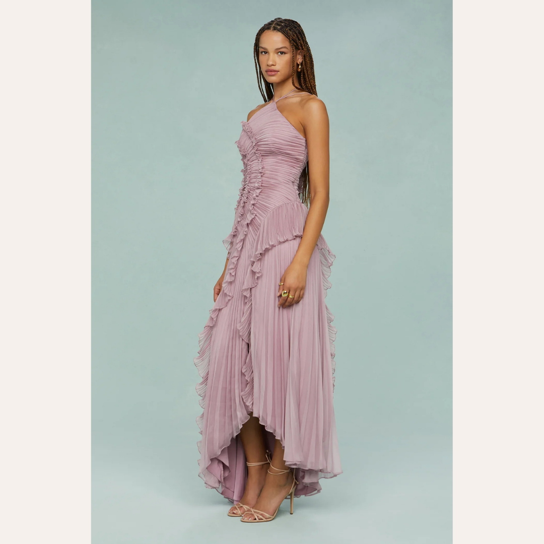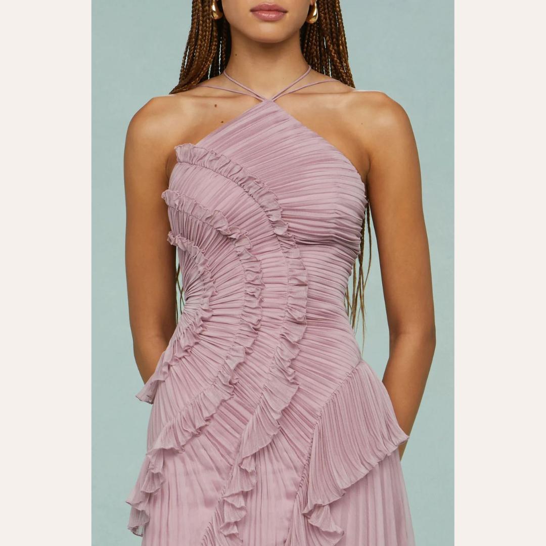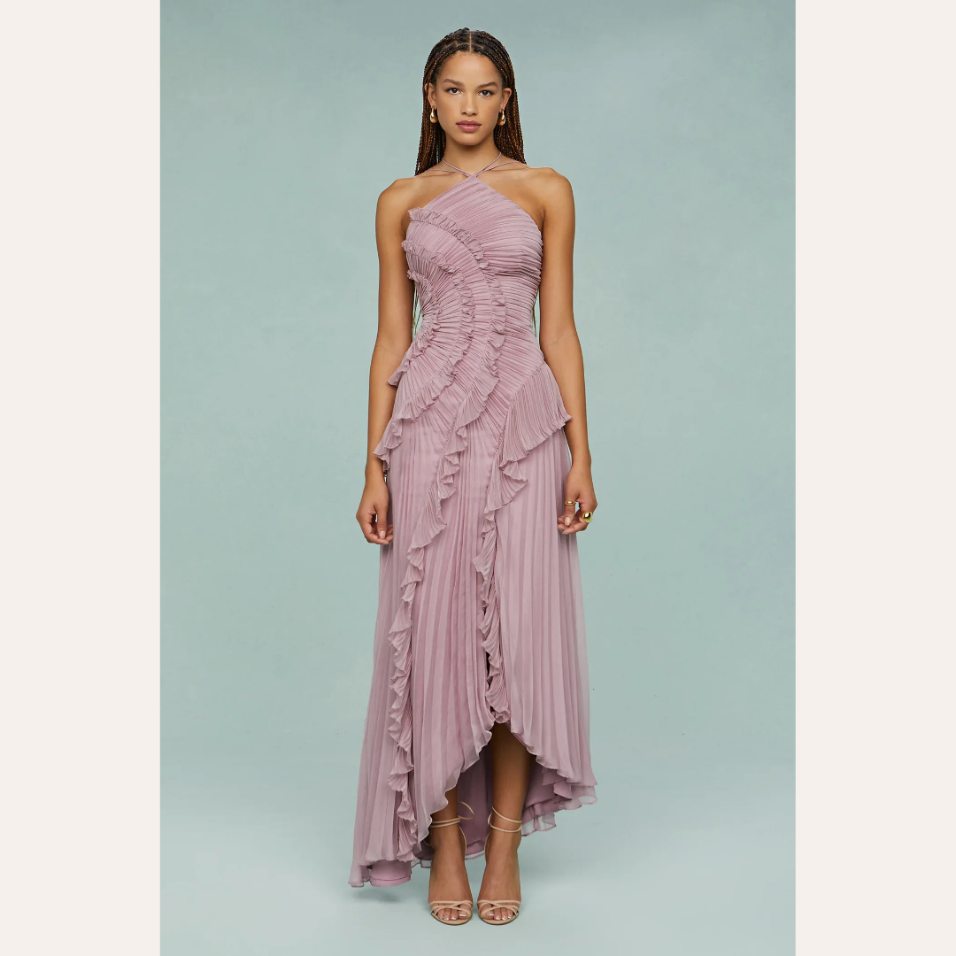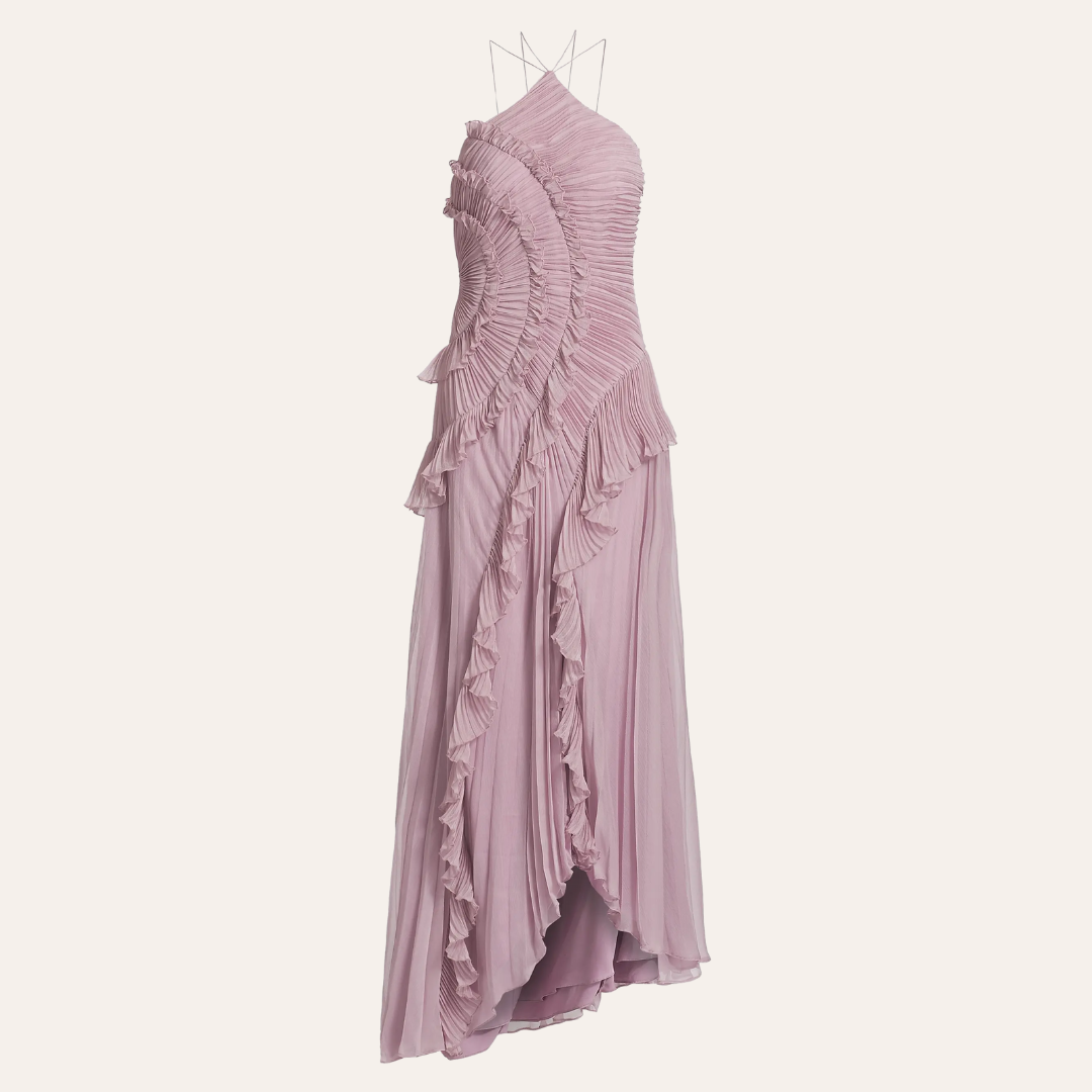 Sukienka Elisia do kreacji, która wyróżnia się nie tylko kolorem, ale i konstrukcją. Eteryczne drapowania, zapięcie pod szyją oraz asymetryczny efekt końcowy kobiecą i rzeźbiarską formą. Jej lekkość i płynność wynikają z tego, że poruszają się razem z Tobą – idealne na wyjątkowe chwile.