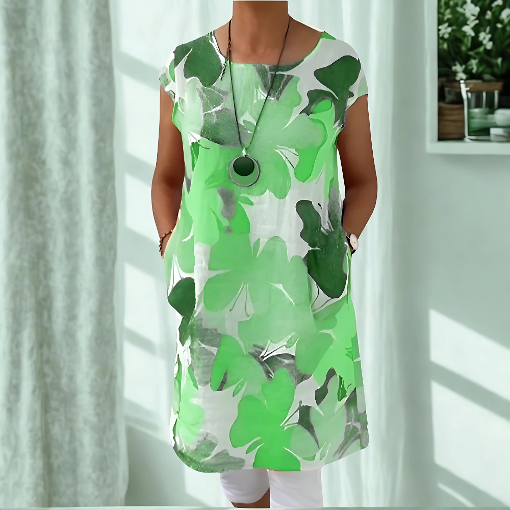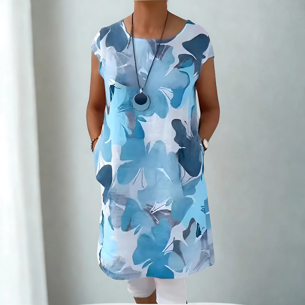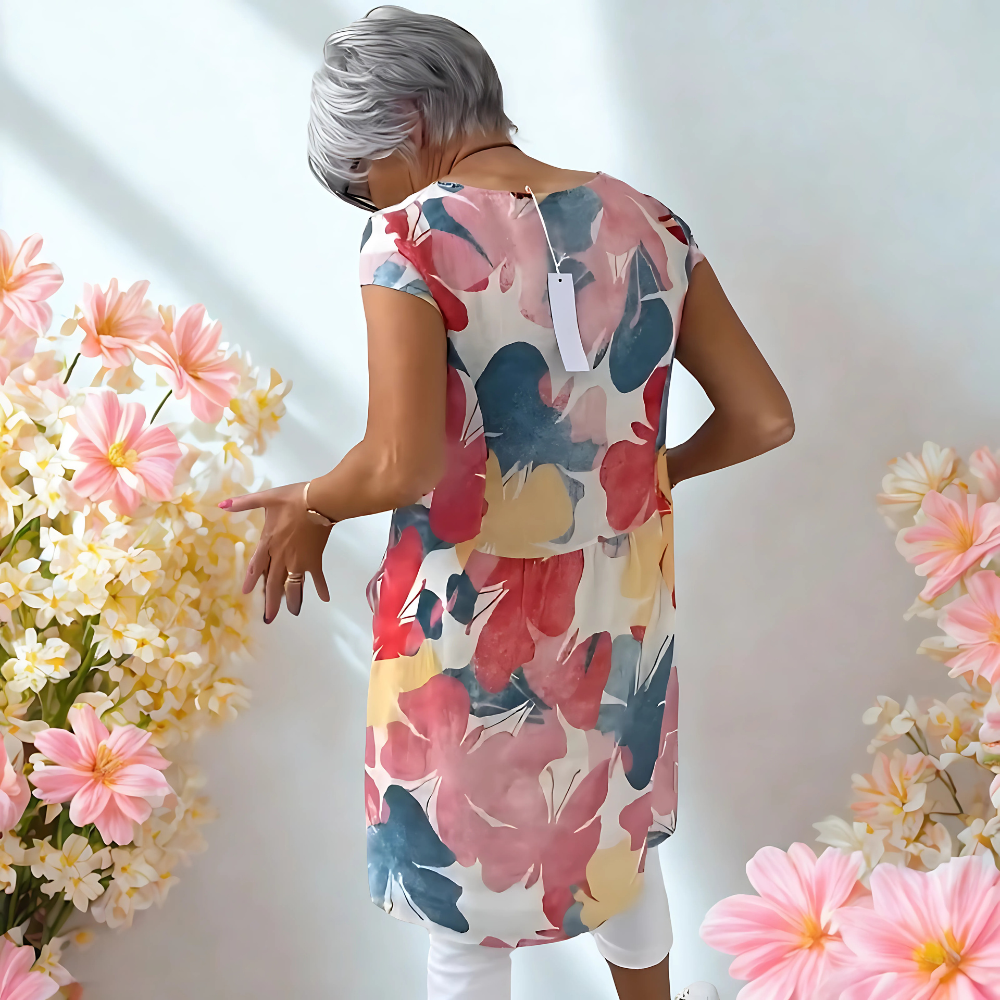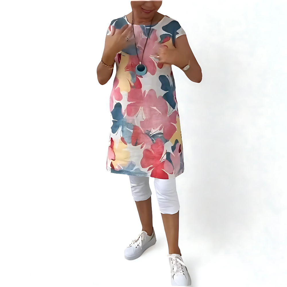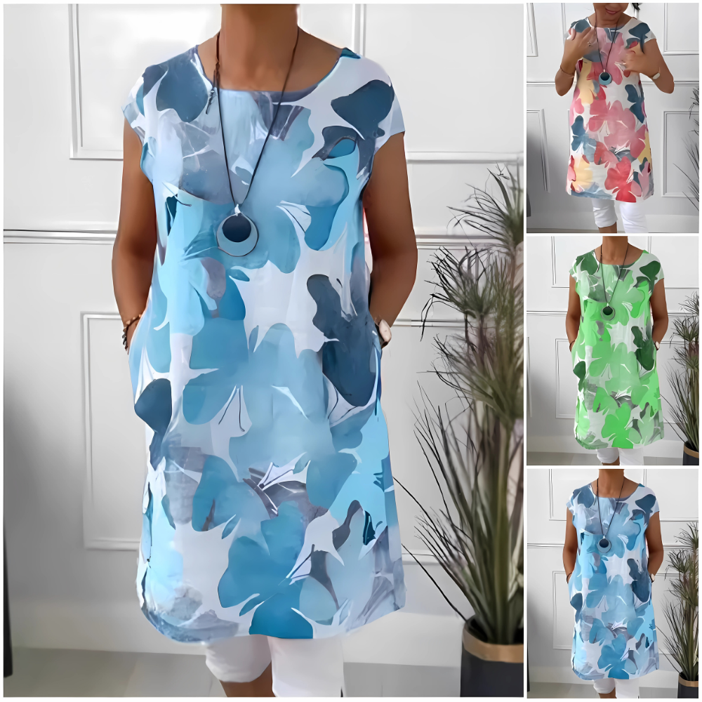 Ta zwiewna sukienka wprowadza kolor do Twojego dnia i łączy wygodę z urokiem, który od razu przyciąga spojrzenia.