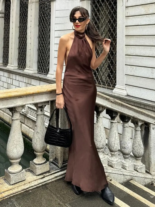 - Wiązanie na szyi + odkryte plecy – zmysłowa sylwetka z eleganckim twistem