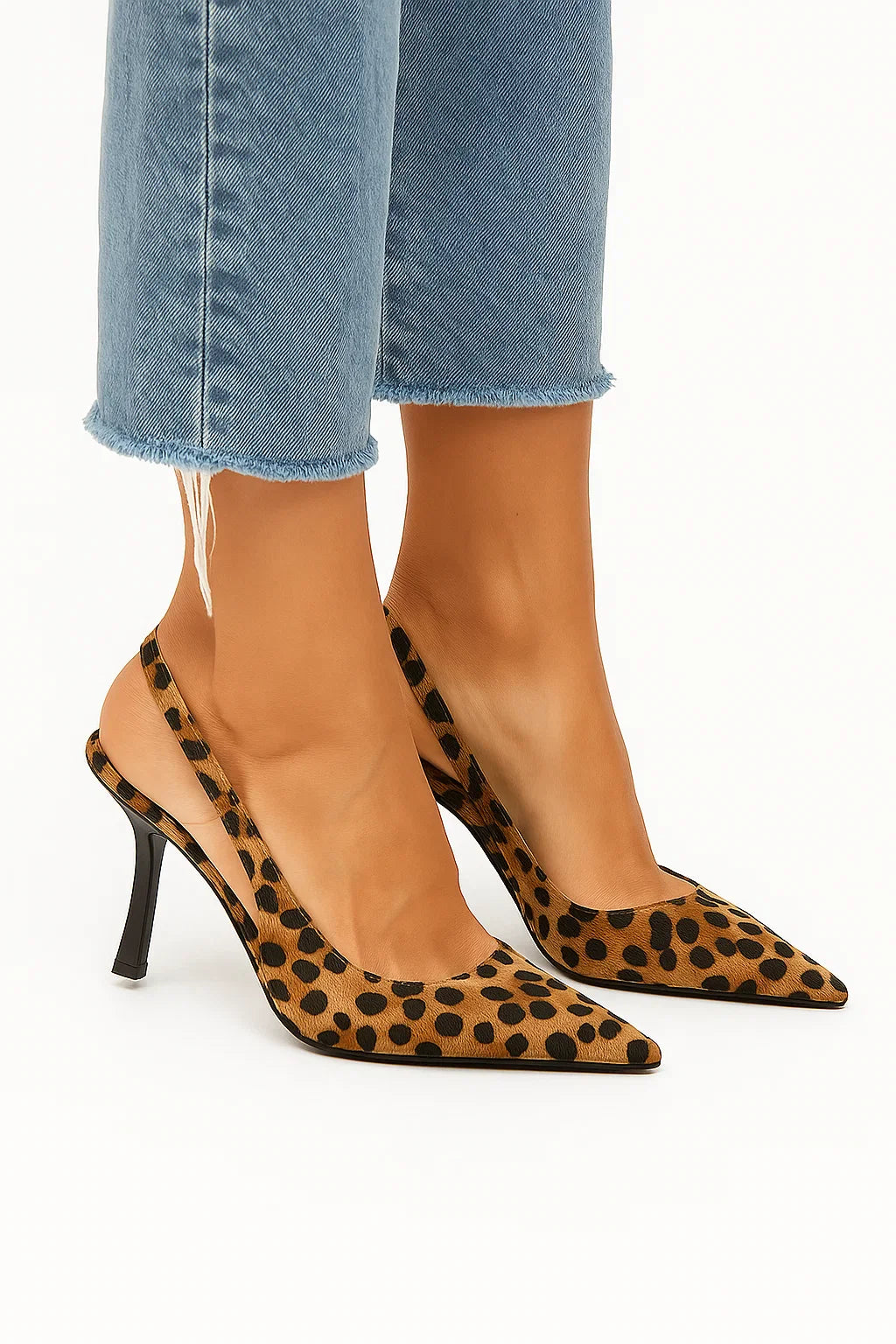 Dla dni, kiedy masz ochotę dodać pazura każdemu krokowi — te panterkowe szpilki robią dokładnie to. Stylowe i przyciągające wzrok, a jednocześnie niezwykle kobiece, świetnie wpisują się w miejskie stylizacje z charakterem. Zamszowe wykończenie dodaje im miękkości i elegancji, a odkryta pięta nadaje lekkości całej sylwetce.