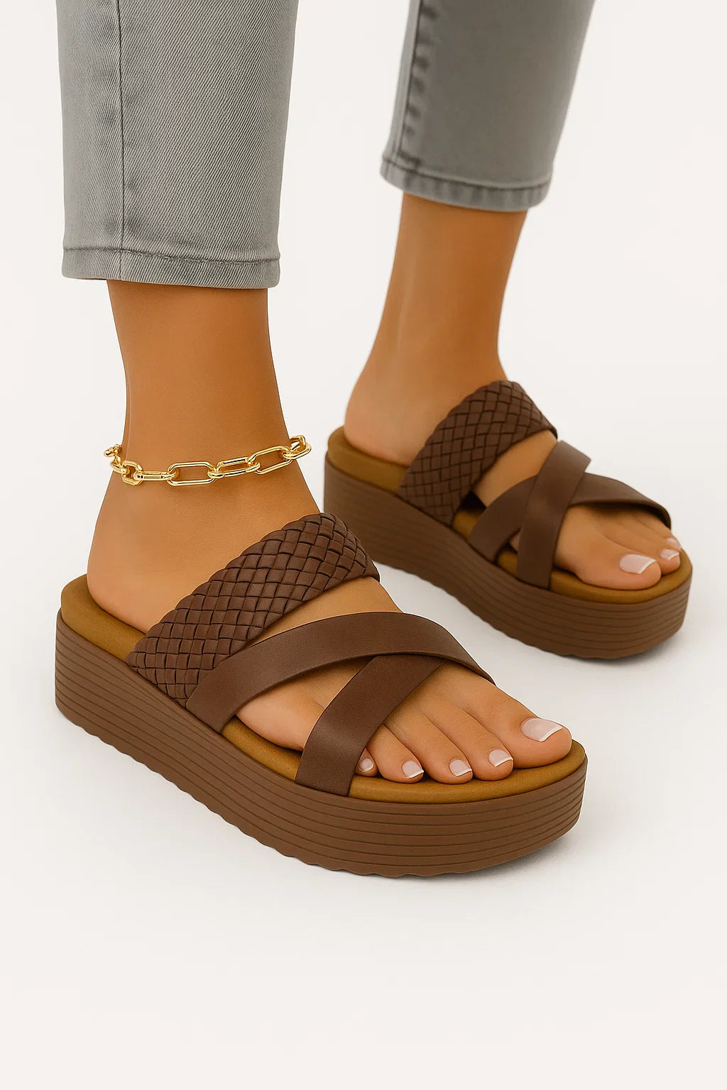 Idealne na letnie dni, kiedy chcesz wyglądać stylowo, ale bez rezygnowania z komfortu. Klapki Livia™ to kwintesencja swobodnej elegancji – ich subtelnie pleciony pasek i krzyżujące się skórzane ramiączka przyciągają wzrok, a ciepły odcień brązu pasuje niemal do wszystkiego. Założysz je na spacer po nadmorskim deptaku, lunch z przyjaciółkami lub szybkie zakupy w mieście – zawsze dodadzą Ci luzu i szyku.