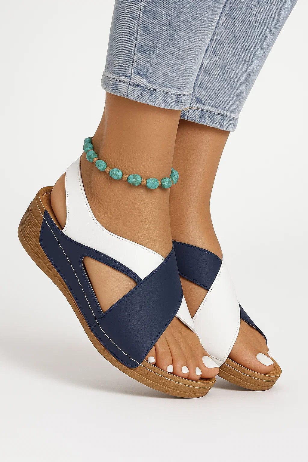 Te sandały to kwintesencja letniego komfortu z nutą ponadczasowego stylu. Lekkie, miękkie i stworzone z myślą o codziennym ruchu – idealne na długie spacery po mieście, szybkie zakupy czy weekendowy wypad za miasto. Kontrastowe połączenie granatu i bieli dodaje im elegancji, a profilowana podeszwa z delikatnym podwyższeniem subtelnie wysmukla sylwetkę.