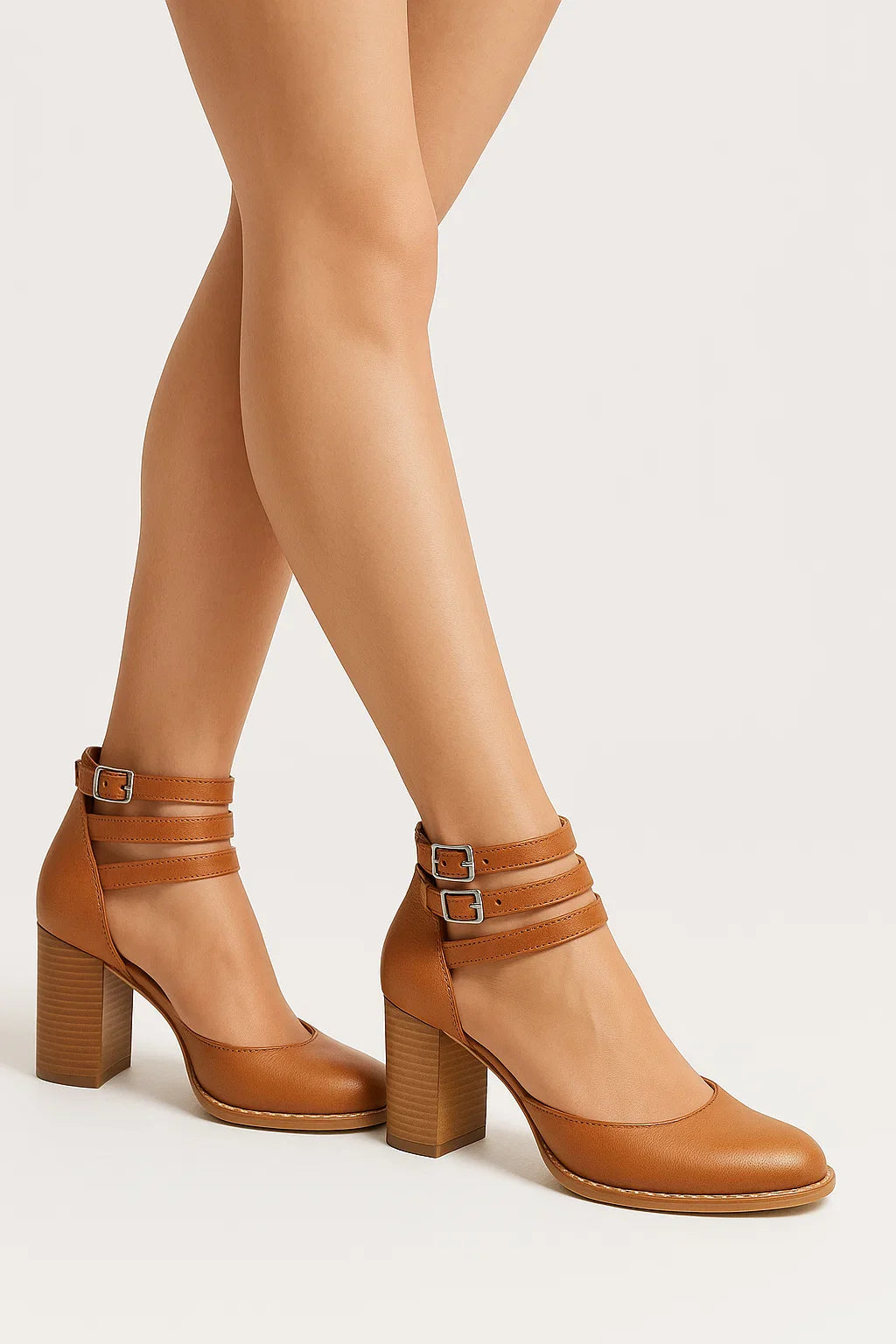 Idealne na pierwsze jesienne spacery po brukowanych uliczkach lub popołudniową kawę w ulubionej sukience — czółenka Livia™ to subtelne połączenie klasyki z nowoczesną formą. Ciepły, karmelowy odcień skóry naturalnej dodaje im przytulnej elegancji, a potrójne paski z klamerkami pięknie podkreślają kostkę i dodają charakteru nawet najprostszym stylizacjom.