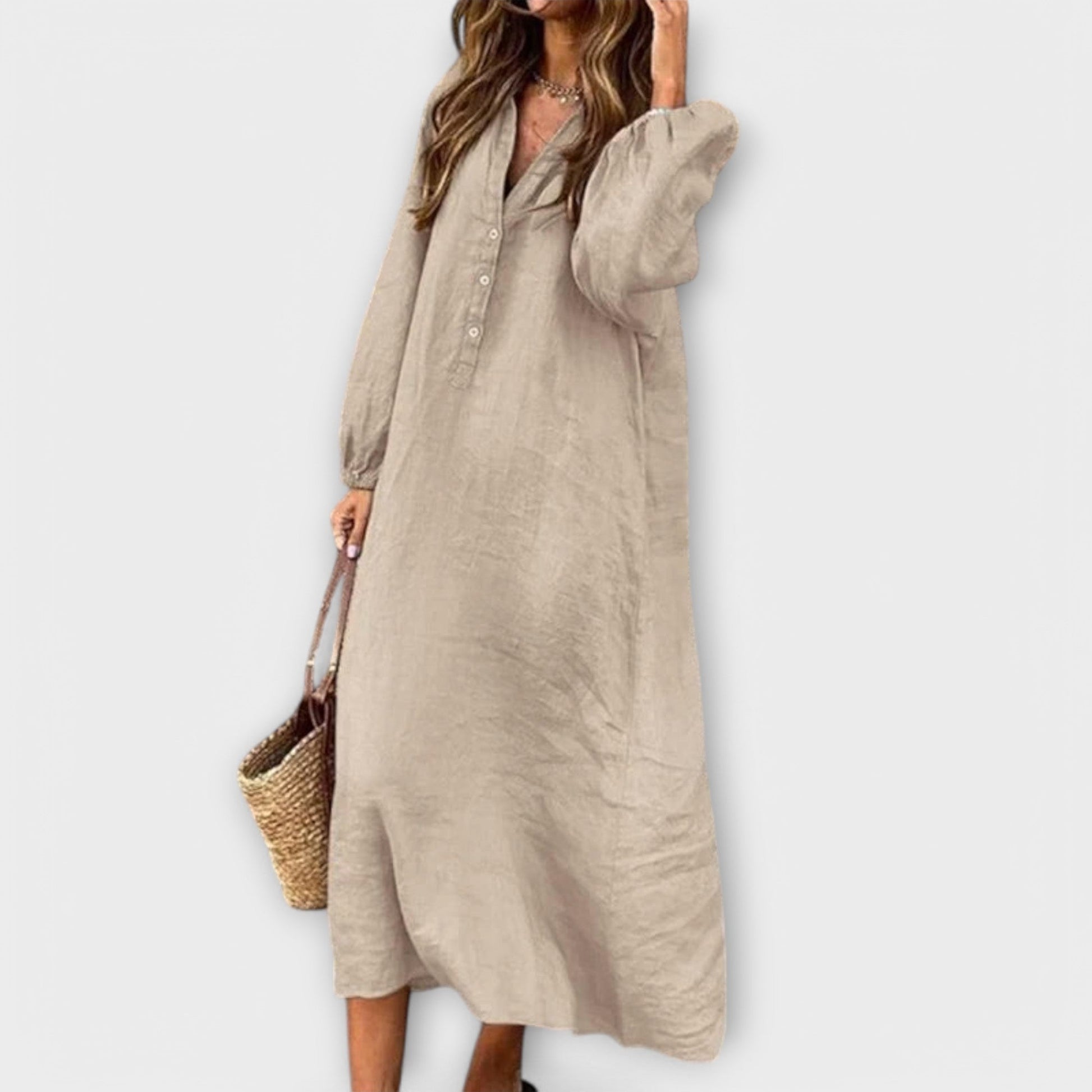 Szukasz sukienki, która łączy elegancję z wygodą? Nasza stylowa lniana sukienka w kolorze khaki to doskonały wybór na każdą okazję – od spotkań z przyjaciółmi po romantyczne randki czy rodzinne uroczystości. Wykonana z naturalnych materiałów, zapewnia przewiewność i komfort przez cały dzień, a klasyczny krój podkreśla atuty sylwetki.