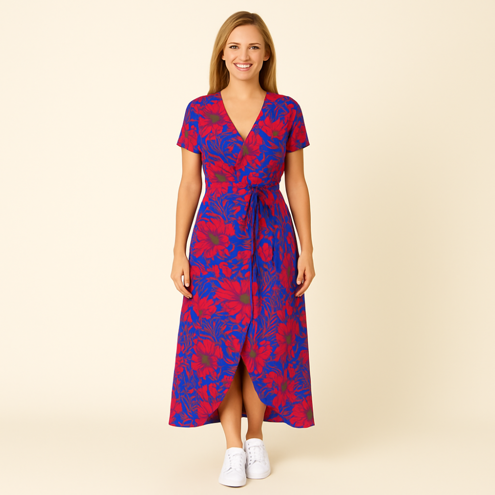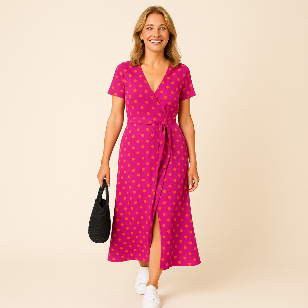Ta świeża sukienka kopertowa porusza się razem z Tobą i daje Ci to radosne, pewne siebie uczucie – gdziekolwiek jesteś.