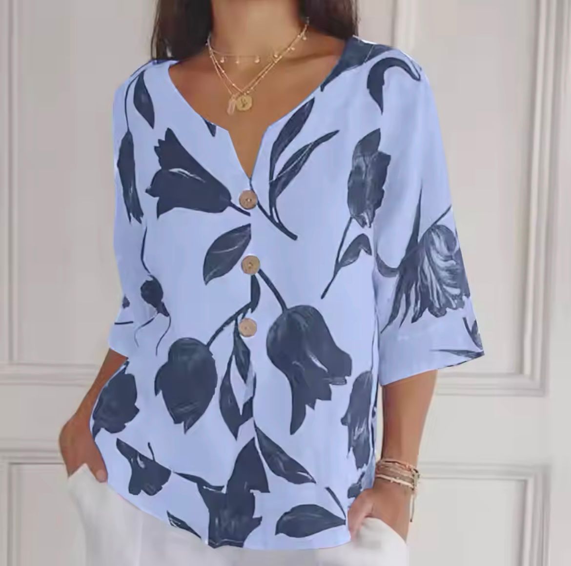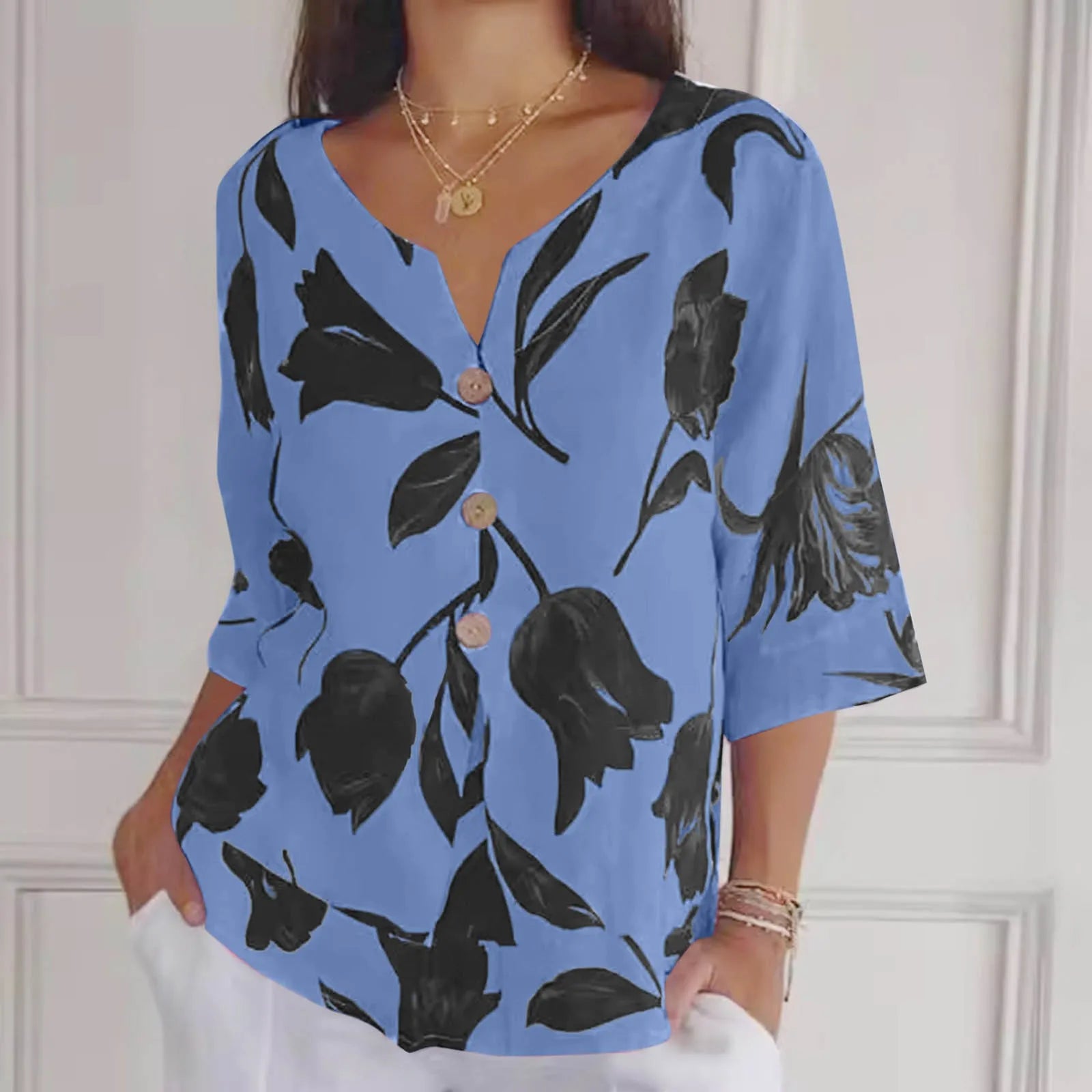 Koniec z niewygodnymi i nudnymi letnimi ubraniami. Letnia koszulka w kwiaty Rosie™ została wykonana z przewiewnej bawełniano-lnianej tkaniny, która pozwala skórze oddychać. Piękny kwiatowy wzór sprawi, że będziesz promienna przy każdej okazji, niezależnie od tego, czy jesteś na wakacjach, czy po prostu wychodzisz na miasto.