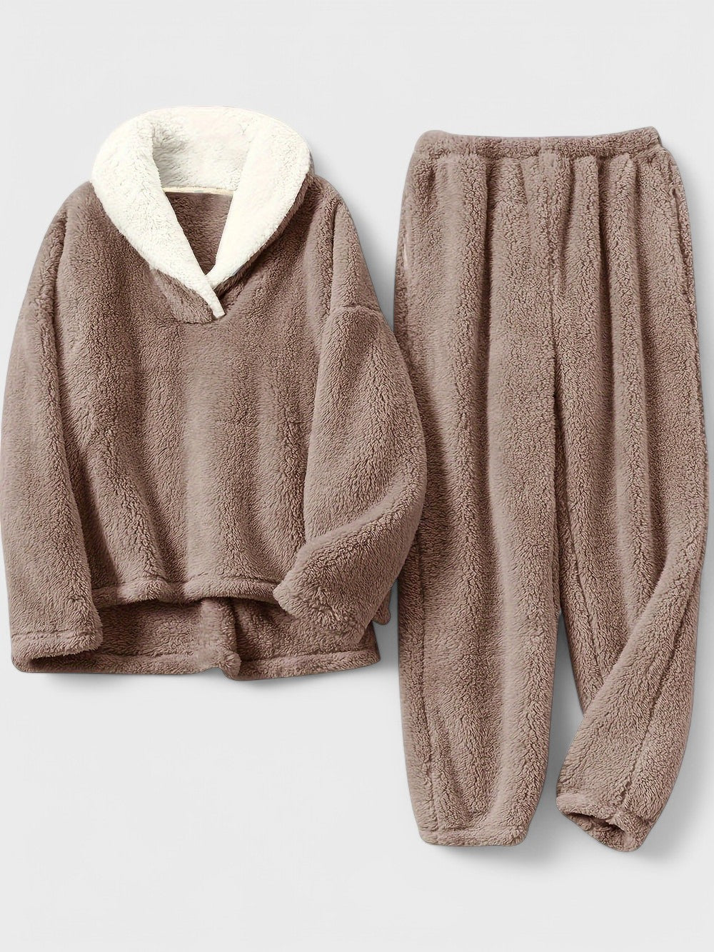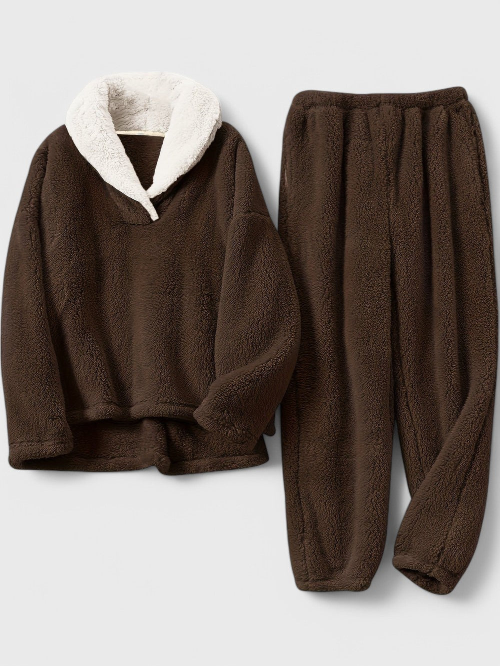 Zestaw Stella składa się z bluzki i pasujących spodni, wykonanych z miękkiego, ciepłego materiału. Zaprojektowany z myślą o komforcie i ponadczasowym stylu, ten zestaw jest idealny do leniuchowania, relaksu lub odprężenia w maksymalnej wygodzie.