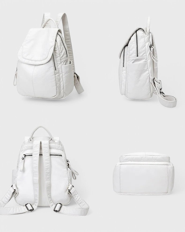 Torba jest wykonana z wegańskiej skóry syntetycznej (PU-skóry) – bez użycia zwierząt i jest trwałą alternatywą dla tradycyjnej skóry. Jej wodoodporne i brudoodporne właściwości sprawiają, że jest idealna do codziennego użytku lub podróży. Ten elegancki plecak z podwójnym systemem zabezpieczeń i lekką konstrukcją oferuje komfort i bezpieczeństwo, będąc idealnym dodatkiem dla kobiet, które są w ciągłym ruchu.
